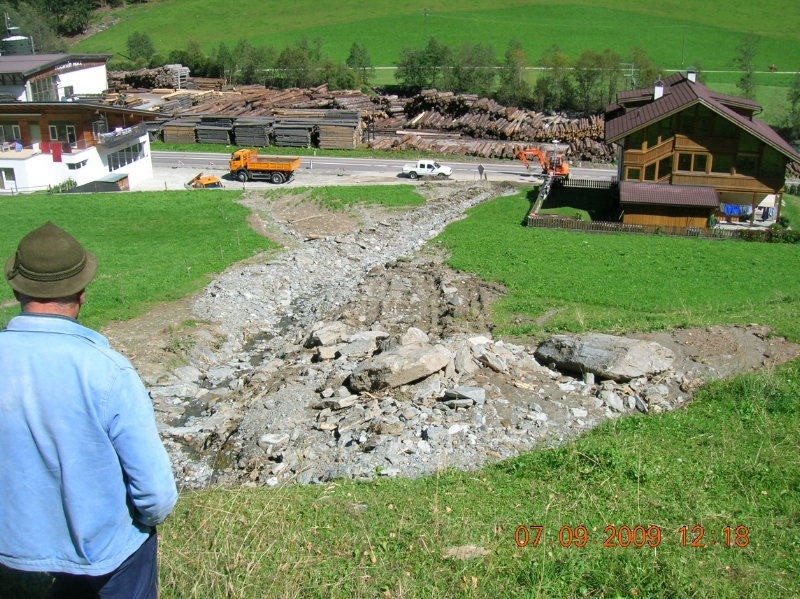 Die Arbeiten zur Verbauung des Hatzlbaches in Luttach in der Gemeinde Ahrntal laufen derzeit an: Das Landesamt für Wildbach- und Lawinenverbauung Ost beginnt derzeit mit der Errichtung eines etwa 110 Meter langen Ablenkdammes und begleitende Geländemodellierungen für einen Betrag von 105.000 Euro. Mit dieser Maßnahme werden mehrere Wohnhäuser im Bereich der Feichter-Säge am Ortseingang von Luttach gegen häufige Murabgänge aus dem bergseitigen Graben des Hatzlbaches abgesichert. Die Arbeiten dauern rund einen Monat, Projekt und Bauleitung liegen in den Händen von Martin Moser; im Einsatz ist Vorarbeiter Hubert Brugger mit seinem Bautrupp.
