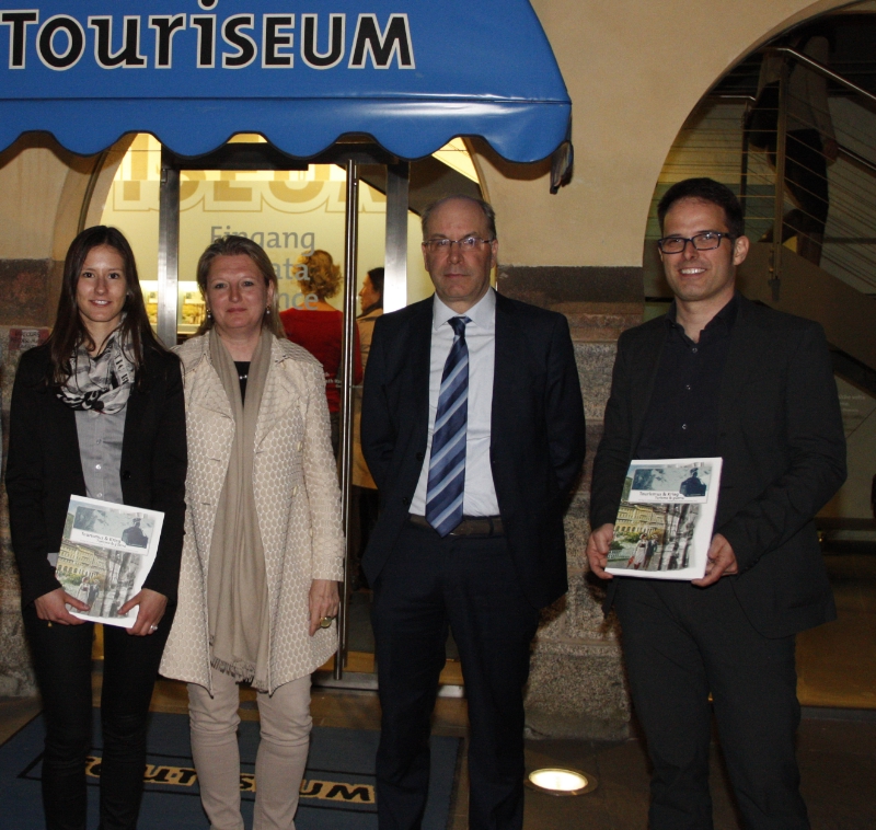 Als Fundament für die Inhalte der Ausstellung diente die Tagung „Krieg & Tourismus", die das Touriseum vom 7. bis zum 9. November 2013 auf Schloss Trauttmansdorff organisiert hat und an der Referenten aus Italien, Österreich, Deutschland, Rumänien, der Slowakei und Slowenien teilgenommen haben, um den Einfluss des Ersten Weltkrieges auf die Entwicklung des Tourismus im Alpenraum zu diskutierten.