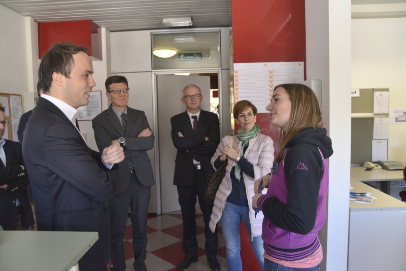Bildungslandesrat Philipp Achammer und Schulamtsleiter Peter Höllrigl verschafften sich heute im Rahmen eines Besuchs an der Fachoberschule für Wirtschaft, Graphik und Kommunikation "Julius und Gibert Durst" in Brixen einen Überblick über die Tätigkeit in der Übungsfirma.