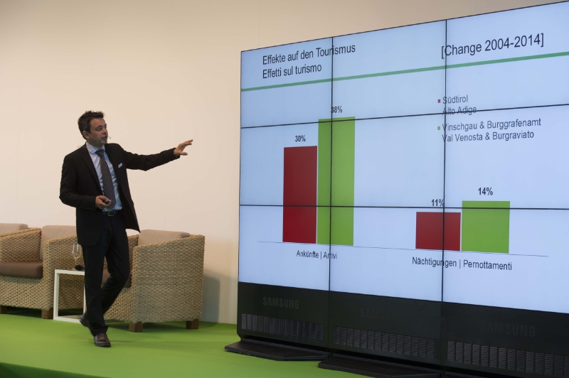 Mobilitätslandesrat Florian Mussner unterstrich genauso wie der Landeshauptmann die Bedeutung der lokalen Eisenbahn als "wichtiges Mosaik-Teil eines modernen Verkehrskonzeptes" das für Südtirol sowohl intern in allen Landesteilen als auch nach außen hin auf allen Wegen – Straße, Schiene, Luft – und in alle Richtungen Erreichbarkeit gewährleisten müsse. Auch Paolo Emilio Signorini, Ressortleiter im römischen Transportministerium, und Universitätsprofessorin Gabi Tröger Weiss bezeichneten die Intermodalität, also die gesamtheitliche Vernetzung der Mobilitätsangebote bis hin zur Bedienung der sogenannten letzten Meile als "größte Herausforderung in der modernen Mobilität", um Wettbewerbsfähigkeit sowie wirtschaftliche, kulturelle und touristische Entwicklung zu gewährleisten. Dabei müsse, so Tröger Weiss, den sich ändernden Ansprüchen und Bedürfnissen der Gesellschaft in besonderer Weise Rechnung getragen werden. Die Alpenregionen, so Signorini, beweisen in Sachen nachhaltige Mobilität eine ganz besondere Sensibilität, die Wiederinbetriebnahme der Vinschger Bahn und die Modernisierung der Pustertal Bahn seien hier Paradebeispiele. Die Vinschger Bahn habe – betonte Landtagspräsident Thomas Widmann in einem kurzen Rückblick – landesweit eine neue Begeisterung für das Bahnfahren ins Rollen gebracht und sei der Auftakt für die Wende in der Südtiroler Mobilitätspolitik gewesen. Heute sei die Vinschger Bahn eine Marke, und zwei Millionen Fahrgäste pro Jahr seien Beweis, dass sich die Investitionen gelohnt haben.