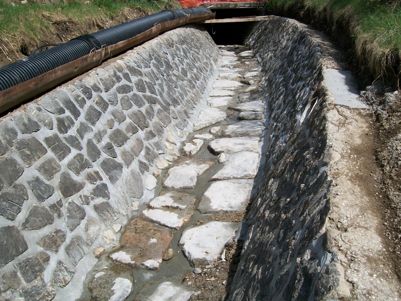 Unter der Baueitung von Projektant Thomas Gamper wird derzeit bei der Mündung des Taistnerbachs in den Pigigbach im Bereich der Landesstraße 46 die beschädigte Künette auf einer Länge von 94 Metern saniert. Im Zuge der Arbeiten, die kurz vor dem Abschluss stehen, wird die Steinverkleidung der Seitenmauern bis auf eine Höhe von rund einem Meter abgebrochen und anschließend von Hand neu gemauert und verfugt. Der Boden der Künette wird mit Zyklopensteinen neu verlegt und mit Beton verstärkt. Für die Ausführung zeichnen Gebhard Oberarzbacher und sein Bautrupp verantwortlich.