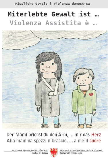In einem gemeinsamen Projekt des Landesamtes für Kinder- und Jugendschutz und soziale Inklusion und des Frauenhausdienstes setzten sich Südtiroler Oberschüler genau mit diesem Thema, der so genannten "miterlebten Gewalt", auseinander und erarbeiteten Plakate für eine Sensibilisierungskampagne. "In der Öffentlichkeit wurde in den vergangenen Jahren bereits öfter die häusliche Gewalt an Frauen zum Thema gemacht", erklärt Soziallandesrätin Martha Stocker. "Dass jedoch in vielen Fällen auch Kinder zu Zeugen dieser Gewalt werden und dadurch oftmals tiefe seelische Wunden davontragen, muss vielen von uns erst noch bewusst werden", so Landesrätin Stocker.