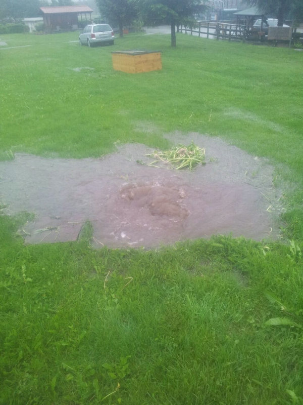 Muntatschinigbach und Platzuterwaldbach treten über die Ufer