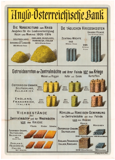 Die Wege, welche die Kriegsparteien zur Finanzierung ihrer militärischen Unternehmungen beschritten haben, waren vorrangig drei: Besteuerung, Staatsverschuldung und Erhöhung des im Umlauf befindlichen Geldes. Mittels umfassender Propagandakampagnen wurde versucht, Sparer zum Erwerb von Kriegsanleihen zu bewegen. Hatten diese Kampagnen anfangs noch großen Erfolg, folgte bald die Desillusion der Bürger. Nach Kriegsende führten die Auflösung von Österreich-Ungarn und die starke Entwertung der Krone zu schwerwiegenden Verlusten bei den Investoren.