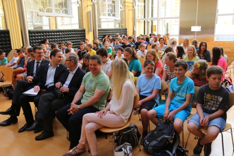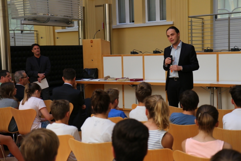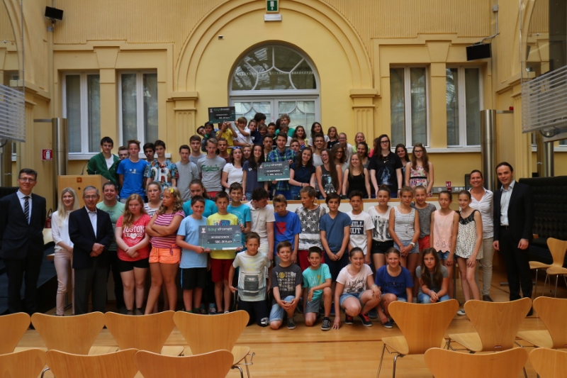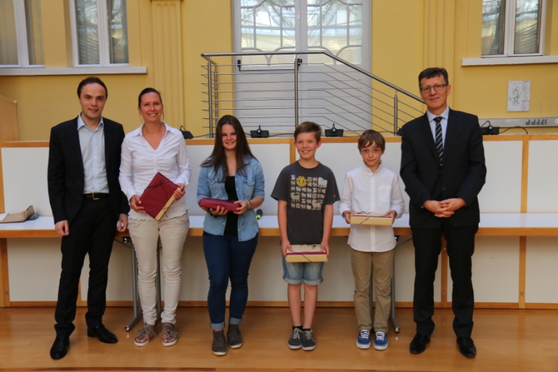 Die drei Siegerteams "CRAN" (Realgymnasium "Jakob Philipp Fallmerayer", Brixen), "Montis" (Mittelschule Röd, Bruneck) und "1athebest" (Mittelschule Lana) erhielten heute (11. Juni) aus den Händen von Landesrat Philipp Achammer und Schulamtsleiter Peter Höllrigl Reisegutscheine für zukünftige Klassenfahrten. Die aus den 20 Erstplatzierten ausgelosten drei Einzelspieler - "Irisky", "FlorianG", "MANUEL01" - sowie die Klassenlehrerin des Siegerteams, Brigitte Abram, erhielten je ein Tablet.