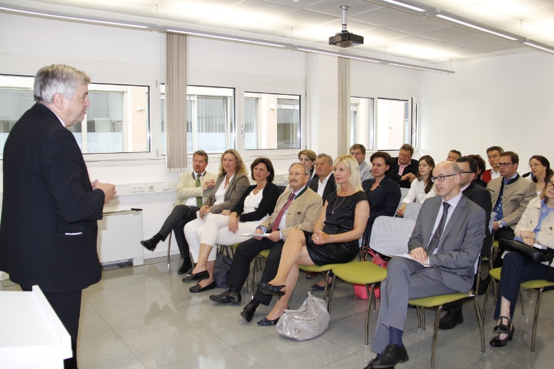 Einen Eindruck über neuen Technologien in der öffentlichen Mobilität konnte die Delegation aus Bayern bei einer kurzen Stadtrundfahrt mit einem der mit Wasserstoff betriebenen Brennstoffzellenbusse gewinnen. Marlene Rinner, Projektleiterin für die Brennstoffzellenbusse bei der Südtiroler Transportstrukturen AG, informierte die Gruppe über das europäische CHIC-Projekt zur Markteinführung dieser Busse und verwies auf die bisher durchwegs positiven Erfahrungen mit diesen Bussen.