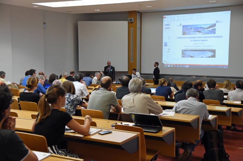 In Zusammenarbeit mit der Fakultät für Naturwissenschaft und Technik der Freien Universität Bozen wirkte die Landesabteilung Wasserschutzbauten maßgeblich an der Festlegung von Monitoring Standards mit und führte in ausgewählten Einzugsgebieten wie etwa am Gadriabach kontinuierliche Überwachungsaktivitäten durch. Dank einer fix installierten Webcam konnte hier bereits mehrmals der Abgang von Geschiebematerial  aufgezeichnet werden. So auch wenige Tage vor der Abschlusskonferenz, als bei einem Unwetter an die 15.000 Kubikmeter Material im Auffangbecken am Gadriabach zurückgehalten werden konnten. Andere Arbeitspakete beschäftigten sich etwa mit der Interaktion, also der Wechselwirkung zwischen Schutzbauwerken und Wasserkraftanlagen oder dem Thema Geschiebemanagement.