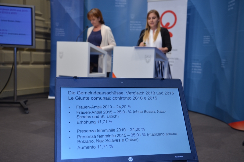 Eine positive Bilanz über den Verlauf der Gemeinderatswahlen und über die Bildung der Gemeindeausschüsse aus Frauensicht haben am heutigen Donnerstag (25. Juli) Landesrätin Martha Stocker und die Präsidentin des Landesbeirates für Chancengleichheit Ulrike Oberhammer gezogen: In den Gemeinderäten sind im Vergleich zu 2010 5,8 Prozent mehr Frauen vertreten, in den Gemeindausschüssen 11,71 Prozent.