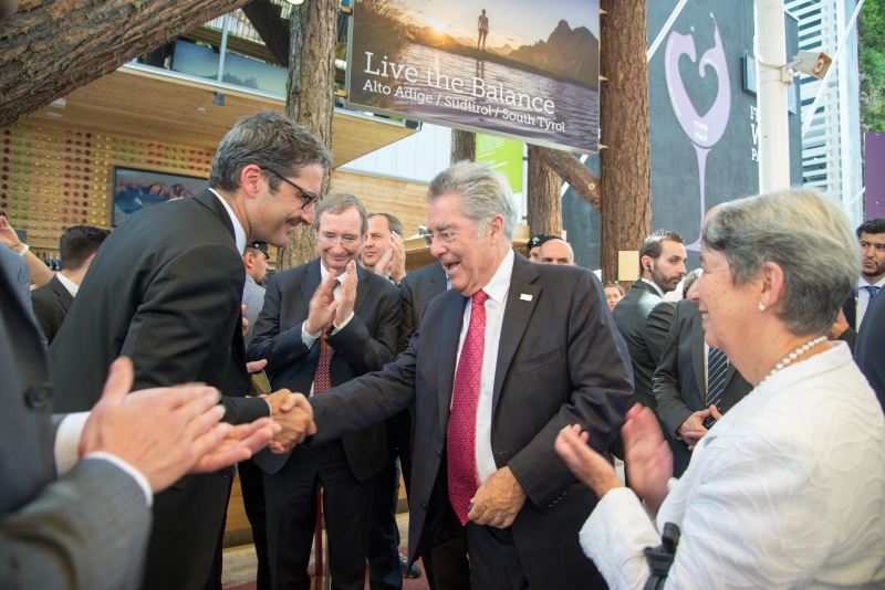 Bundespräsident Heinz Fischer lobt den Südtirol-Stand bei der EXPO