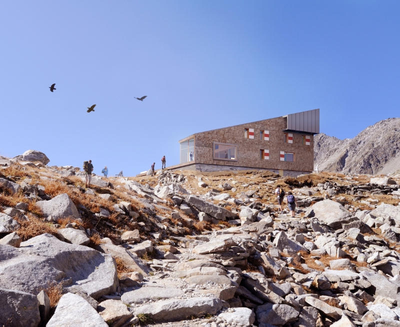 Das Projekt des Brixner Architekturbüros MoDus Architects wurde vor drei Jahren unter acht Bewerbern als Sieger bestimmt. Es sieht einen L-förmigen Holzbau vor, der sich gut in die Landschaft einfügt. Die neue Schutzhütte weist gegen die Windseiten hin eine geschlossene Fassade auf und öffnet sich gegen Westen. Sie bietet damit Platz für eine windgeschützte Terrasse, die eine Aussicht in die Umgebung ermöglicht. Das Winterlager erhält einen zusätzlichen wettergeschützten Zugang von außen. Die Bauweise ist kompakt. Die neue Hütte hat vier Geschosse, im Eingangsbereich befinden sich Stube bzw. Speisesaal, Küche und Sanitäranlagen. Die Schlaflager der Gäste und das Winterlager liegen in den oberen Geschossen.