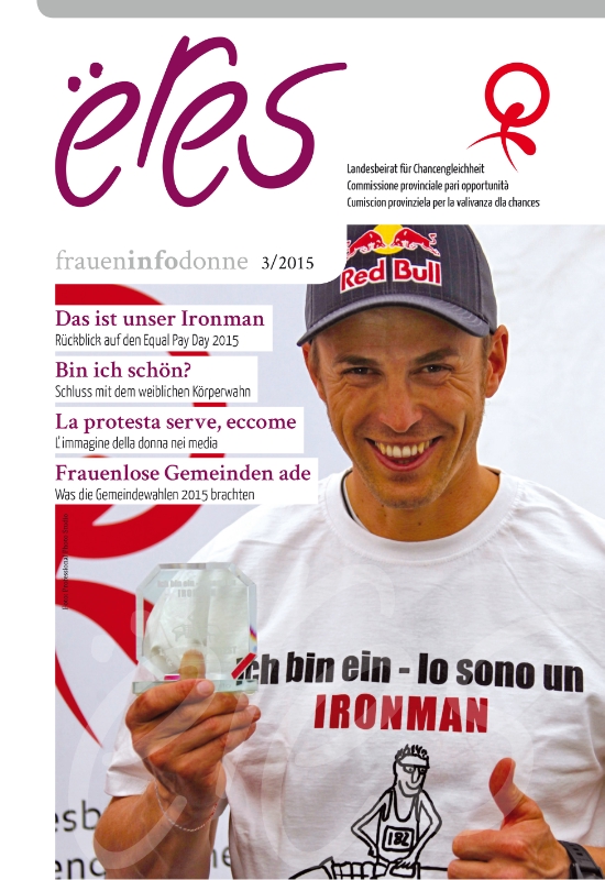Außerdem gibt es einige Eindrücke vom 1. Bügelwettbewerb im Rahmen des diesjährigen Equal Pay Day unter dem Motto "Unbezahlte Arbeit in der Familie". Dem Sieger des Ironman-Contests Roland Fischnaller ist übrigens auch das Cover der neuen Ausgabe der "ëres" gewidmet.