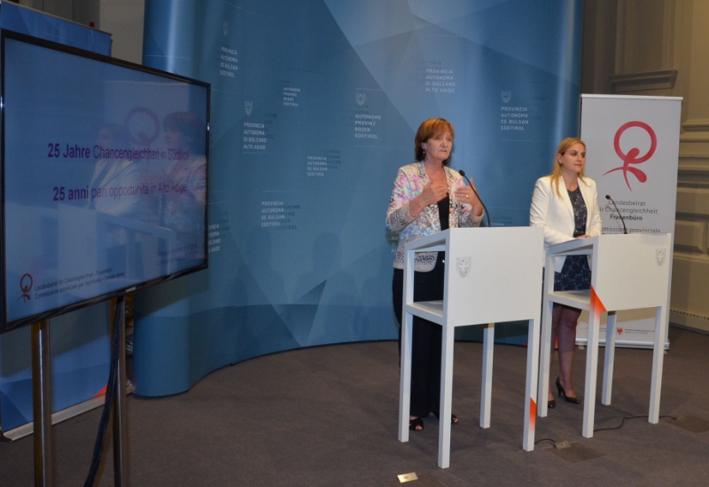 "Die Gründung des Landesbeirates für Chancengleichheit im Jahr 1989 stellt den Beginn einer Veränderung in der Südtiroler Gesellschaft dar", unterstrich die Landesrätin für Chancengleichheit Martha Stocker anlässlich der heutigen Medienkonferenz. Seitdem setze sich der Beirat mit Erfolg für gleiche Chancen von Männern und Frauen ein, dankte die Landesrätin den Beiratsfrauen und den Präsidentinnen Marianne Steinhauser, Haidrun Kasslatter, Julia Unterberger und Ulrike Oberhammer für ihre Arbeit. Stocker erinnerte zudem an die Meilensteine in den vergangenen Jahren: Das Regionalgesetz von 1994, das erstmals eine verpflichtende Frauenquote für die Kandidatenlisten zu den Gemeinderatswahlen vorgesehen und zu einer Verdoppelung der Frauenpräsenz beigetragen hatte und das Gesetz zur Chancengleichheit aus dem Jahr 2010. "Frauen haben gemeinsam mit verständnisvollen Männern einen riesengroßen Schritt gemacht", betonte Stocker. Die verstärkte Frauenpräsenz in politischen Ämtern trage zu einem gesellschaftlichen Wandel bei. Landesrätin Stocker und die Präsidentin des Landesbeirates Oberhammer erinnerten anlässlich der Medienkonferenz auch daran, dass es noch viel zu tun gebe und nannten eine Reihe von Themen, darunter die Schließung der Lohnschere von 17 Prozent zwischen Frauen und Männern, die Stärkung der Frauenpräsenz in den Verwaltungsräten, aber auch in den Führungsebenen von privaten Unternehmen und die so genannte Gendermedizin. "In der medizinischen Behandlung gilt es den unterschiedlichen Symptomen von Frauen und Männern sowie den geschlechterspezifischen Behandlungsmethoden Rechnung zu tragen", unterstrich Präsidentin Oberhammer.