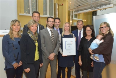 Der Audit-Rat "familieundberuf" der Familienagentur des Landes und der Handelskammer Bozen hat auch heuer wieder einen zertifizierten Betrieb besucht. Dieses Jahr war die Raiffeisenkasse Überetsch an der Reihe, welche 2013 das Zertifikat "audit familieundberuf" erhalten hat.
