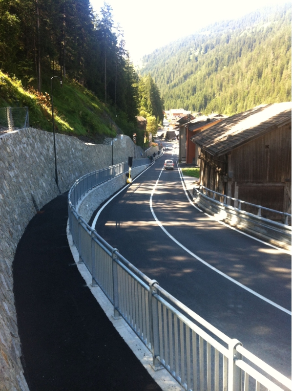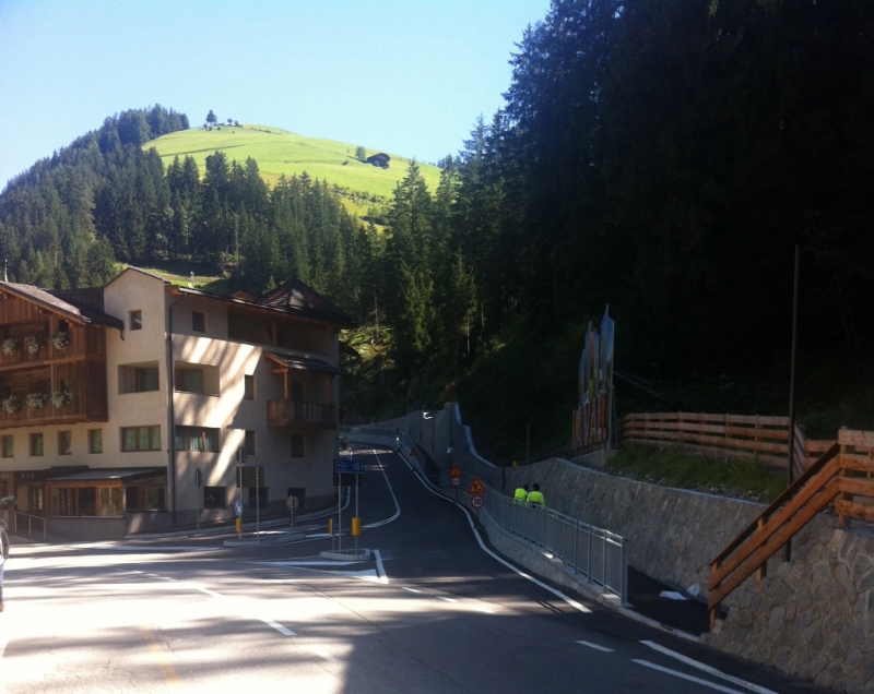 In der Fraktion Pederoa (Gemeinde Wengen) wurde in den vergangenen Wochen die Landesstraße (LS 60) an mehreren gefährlichen Stellen ausgebaut und begradigt und an der Bergseite wurde ein Gehsteig angebracht. Im September werden die Verbesserungsarbeiten abgeschlossen.