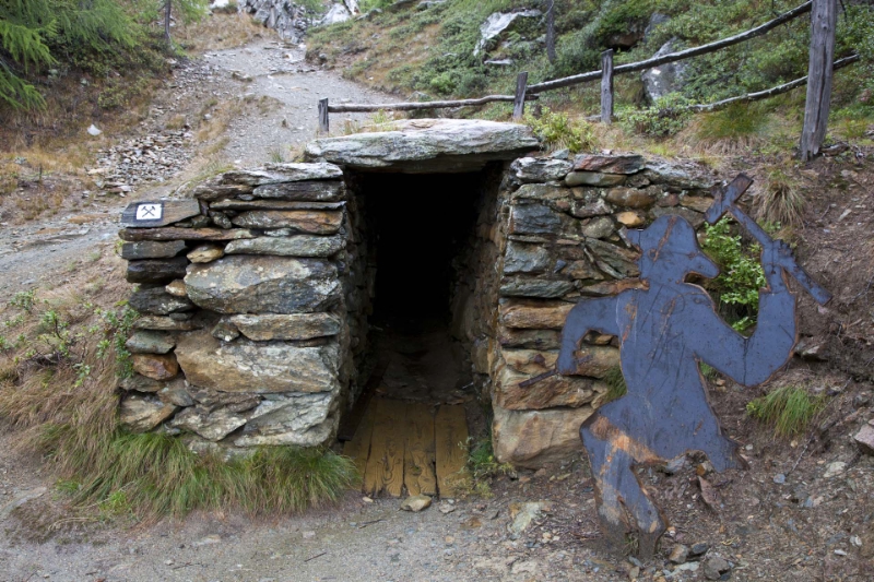 Der sanierte Lehrpfad startet beim Standort des Südtiroler Bergbaumuseums in Prettau (1500 Meter Meereshöhe) und folgt dem ehemaligen Steig, den früher die Knappen benutzten, um vom Dorf zu den oberen Gruben zu gelangen. Der mit den Bergbausymbolen markierte Weg führt leicht ansteigend rund 500 Höhenmeter nach oben zu den höchstgelegenen Kupferabbauen des Bergwerkes auf rund 2000 Meter Meereshöhe. Nach etwa zehn Minuten Fußmarsch gelangt man bereits zum St. Nikolausstollen, neben dem eine besondere Holzkonstruktion mit Wasserrad und riesigen Holzstempeln steht - ein rekonstruiertes Pochwerk, das in früheren Zeiten zur Zerkleinerung der Erze diente. Daneben fallen die Erzhalden und Ruinen von Knappenunterkünften auf, aber auch eine imposante Mauer. Dieser aus wuchtigen Steinen aufgeschichtete Schutzwall wird von den Einheimischen auch „Saukopf" genannt und sollte die Stollen und Gebäude vor Lawinen schützen. Der Weg führt weiter hoch durch schattigen Wald und man kommt an den Mundlöchern von sehr gut erhaltenen Schräm-Stollen, also Stollen welche händisch mit Spitzeisen und Schlägel vorgetrieben wurden, vorbei. Sie tragen Namen von Heiligen, wie St. Christoph, St. Johannes, St. Georg usw. In unmittelbarer Nähe zum St. Johannesstollen befindet sich ein großer Wasserfall, von dem den Wanderern ein kühler Sprühnebel entgegenweht. Der höchstgelegene Punkt ist die St. Wilhelm Fundgrube auf 2080 Meter Meereshöhe, wo vermutlich das erste Kupfererz gefunden wurde. Wer noch eine gute Viertel Stunde weitermarschiert, kann bei der Rötalm ( 2116 Meter Meereshöhe) einkehren und dann über den Aufstiegsweg nach Prettau absteigen. Dabei empfiehlt sich auf der Höhe des Wasserfalls abzuzweigen und einen kleinen Umweg zum sanierten Barbara-Bildstöckl zu machen. Die Gesamtgehzeit, also Auf- und Abstieg des Knappensteigs beträgt rund zweieinhalb Stunden. Die Wanderung ist als mittelschwer eingestuft. Eine Begehung des Knappensteiges lässt sich auch gut mit einem Besuch des Schaubergwerkes Prettau und des Bergbaumuseums im Kornkasten/Steinhaus, sowie einer Schnuppereinfahrt in den Klimastollen kombinieren. Der Lehrpfad kann auch nur in Teilstücken begangen werden, z.B. bis zum Nikolausstollen mit Pochwerk oder bis zum Wasserfall.
