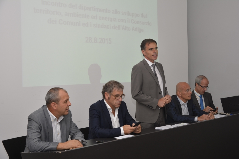 Einmal im Jahr, so kündigte Landesrat Richard Theiner heute an, soll es künftig zu einem Informationstreffen und einem regen Austausch zwischen den Führungskräften des Ressorts Raumentwicklung, Umwelt und Energie und dem Gemeindenverband und Südtirols Bürgermeisterinnen und Bürgermeistern kommen. "Die Zusammenarbeit zwischen Land und Gemeinden wird nicht immer reibungslos sein, aber es ist wichtig, dass wir Themen miteinander diskutieren und uns absprechen", betonte Landesrat Theiner in seiner Einführung. "Denn - auch wenn die Interessen oft unterschiedlich sind - letztlich arbeiten wir alle für dieselben Bürger."