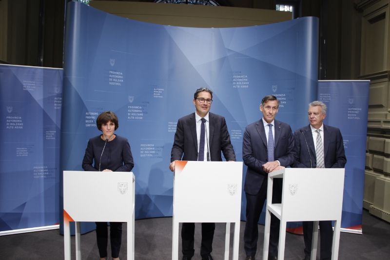 Landeshauptmann Arno Kompatscher, Landesrätin Waltraud Deeg, Landtagspräsident Thomas Widmann und dessen Vize Roberto Bizzo stellten heute das Programm des Tages der Autonomie 2015 bei einer Pressekonferenz vor. „Seit Jahren feiert die Landesregierung den 5. September als Tag der Autonomie, um an das Gruber-Degasperi-Abkommen zu erinnern, das die völkerrechtliche Grundlage unserer außergewöhnlichen Autonomie bildet“, erklärte Landeshauptmann Arno Kompatscher. „Am Tag der offenen Tür bietet sich den Bürgern die Gelegenheit, aus erster Hand zu erfahren, was es bedeutet, autonom Gesetze erlassen und verwalten zu können“, so Kompatscher weiter. Auf dem Silvius-Magnago-Platz und in den angrenzenden Landtagsgebäuden wird dazu auch in diesem Jahr wieder ein reichhaltiges Programm geboten, das den Besuchern nicht nur einen umfassenden, sondern auch vergnüglichen Einblick hinter die Kulissen der Landesverwaltung und des Landtages ermöglichen soll.