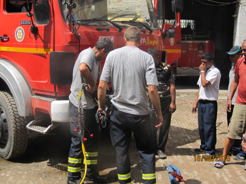 Bereits am ersten Tag nach der Ankunft in Nepal wurde ein Treffen mit dem Kommandanten der Feuerwehr Kathmandu sowie den Südtiroler Feuerwehrmänner organisiert. Zunächst wurden die Fahrzeuge begutachtet, um sich ein Bild über den Zustand der Fahrzeuge zu machen.