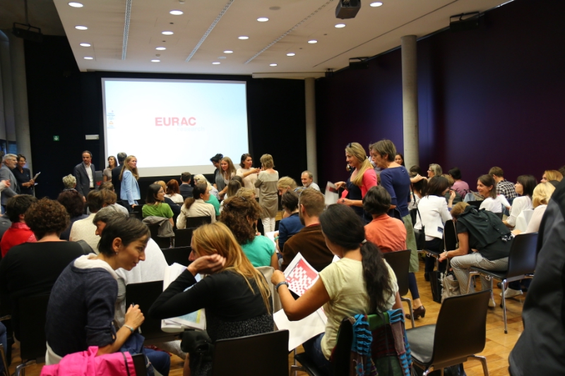 Im Rahmen einer Eröffnungstagung trafen sich heute die Mitarbeiter der sechs Sprachzentren und des Kompetenzzentrums in der Eurac in Bozen.