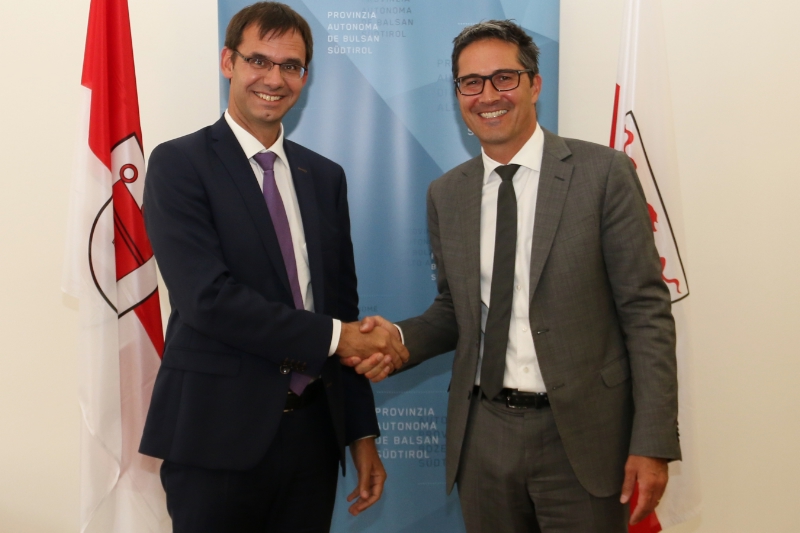 Zu einem ersten offiziellen Gespräch in Südtirol haben sich heute (10. September) Landeshauptmann Arno Kompatscher und sein Vorarlberger Amtskollege Markus Wallner im Palais Widmann in Bozen getroffen. Dabei kamen gemeinsame Anliegen der Länder im Alpenraum zur Sprache wie etwa die gemeinsame Interessenvertretung in Brüssel, die Zukunft der Arge Alp sowie Standortentwicklung und Ausbildung.