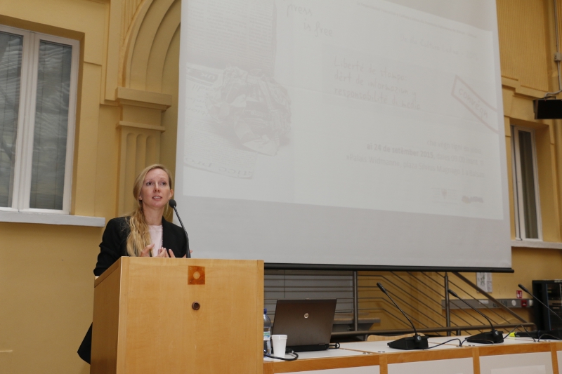 Die Juristin Kolis Summerer referierte zur freien Meinungsäußerung und zum Schutz der Person im Strafrecht und die aktuelle politische Debatte über die Beziehungen zwischen Medien, Rechtssprechung und Demokratie. Außerdem ging Summerer auf die Meinungsfreiheit in den neuen Medien ein und unterstrich, dass es neue Instanzen zu deren Regulierung und Schutzmechanismen brauche.