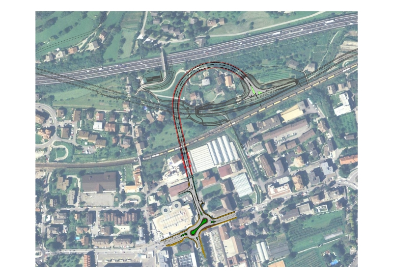 Das Projekt umfasst den Mittelanschluss der Umfahrung, welcher die Dante- und Romstraße betrifft, nach einem ersten oberirdischen Teilstück zwischen dem Gemeindebauhof und der Reatto-Kaserne unterirdisch unter den Bahngleisen hindurchführt, um zwischen den Tunneln auf der Süd- und Nordseite in die Umfahrung einzumünden. Die Strecke ist insgesamt 468 Meter lang, 362 Meter verlaufen durch den Tunnel. Die Straße wird zwei Fahrbahnen von 3,75 Metern Breite umfassen.
