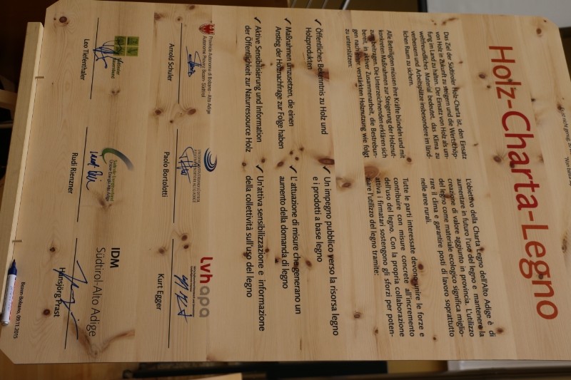 Technische Details zur heutigen Pressekonferenz, zum Holz-Tisch und zur Holz-Charta finden sich auf der Homepage des TIS innovation park: http://tis.bz.it/de/cluster/holz-technik/news/holz-charta-feierlich-unterzeichnet