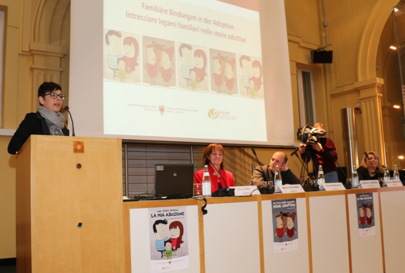 Im zweiten Teil am Nachmittag wurden, ausgehend von der Resilienzfähigkeit der Kinder, aber auch unter Zuhilfenahme konkreter Instrumente, wie der Biografiearbeit, spezifische Möglichkeiten aufgezeigt, die familiären Bindungen zu stärken. Die Psychologin und Psychotherapeutin sowie Dozentin im Zentrum für Forschung für Psychotherapie in Trient und Mailand und ehemalige ehrenamtliche Richterin am Jugendgericht Trient, Roberta Bommassar, ist in ihrem Referat auf das Thema der natürlichen Elternschaft und der Adoptivelternschaft aus Sicht der Bindungstheorie eingegangen. Die Eltern-Kind Beziehung in den einzelnen Lebensabschnitten einer Adoptivfamilie beleuchtete der Psychologe und Psychotherapeut für Familien sowie Didaktiker an der Akademie für Familienpsychotherapie in Rom, Antonio D'Andrea. Die Pädagogin und Leiterin der sozialtherapeutischen Einrichtung VSM Frankfurt am Main, Karin Mohr, widmete sich hingegen dem Instrument der Biografiearbeit mit adoptierten Kindern zum Ziel der Stärkung der familiären Bindungen innerhalb der Adoptivfamilie. Unter die Lupe genommen wurde auch die soziale Dimensionen der familiären Bindungen in der Adoption und somit die verschiedenen Formen der Elternschaft, und zwar durch die Sozialassistentinnen der Dienststelle Adoption Südtirol, Christine Egger und Silvia Vidale. Auf besonderes Interesse sind die direkten Erfahrungsberichte von Familie Irsara, einer Adoptivfamilie mit drei adoptierten Kindern aus Brasilen und von Kusuma, einer inzwischen erwachsenen Adoptierten aus Indien, gestoßen.