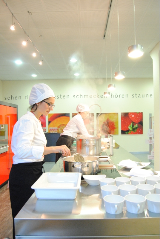 Wenn Sie noch nie bei einem Schaukochen dabei waren oder so etwas nur aus dem Fernsehen kennen, dann wird es Zeit, dass Sie die Haslacher Genuss-Schule besuchen. Hier kochen wir für Sie! Sie haben die Möglichkeit uns dabei über die Schulter zu schauen und jederzeit Fragen zu stellen. Wir informieren Sie ausführlich über die Qualitätsmerkmale, die fachgerechte Verwendung und die gesundheitlichen Vorteile unserer Zutaten. Anschließend dürfen Sie uns beim Anrichten der Speisen helfen.