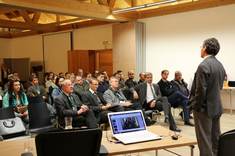 "Jagd ohne Ehrfurcht und ethisch korrekte Einstellung ist nicht zukunftsfähig", mahnte Wildbiologe Paolo Molinari in seinem einstündigen Vortrag "Weidwerk heute: Was will der Jäger? Was die Gesellschaft?" an. Die Jagd, führte er aus, habe viele dunkle Seiten, die bewältigt werden müssten, aber auch viele positive, auf denen Jungjäger aufbauen können und die nach außen kommuniziert werden sollten. "Die Jagd muss gut ausgeführt werden", appellierte er an die Jungjägerinnen und Jungjäger. So solle sich die Jagd etwa nicht auf Trophäenjagd beschränken; in der Dämmerung und in der Nacht und mit unerlaubten Hilfsmitteln wie Lichtquellen und Nachtsichtgeräten dürfe nicht geschossen werden, ein Schuss müsse immer sicher angebracht werden. "Jagd ist nicht Spaß oder Spiel oder ein Hobby", unterstrich der Wildbiologe, der selber Jäger ist: "Im Mittelpunkt der Jagd sollen Ziele wie Erhaltung von Lebensräumen und Wildbeständen stehen".
