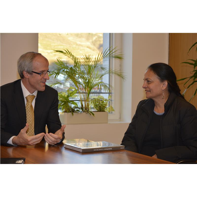 Ressortdirektor Florian Zerzer wies in seinen einführenden Worten in Vertretung von Landesrat Richard Theiner auf das Engagement des Landes Südtirol in Sachen Klimaschutz hin: "Seit Jahren leisten wir in diesem wichtigen Bereich unseren Beitrag, sei es beim Ausbau der erneuerbaren Energieträger, sei es beim KlimaHaus und in Zukunft noch stärker im Verkehr", betonte Zerzer, der sich bei Esperanza Martinez für diese Möglichkeit des Gedankenaustausches bedankte und ihr den Klimaplan des Landes Südtirol überreichte. Mit der darin festgelegten Strategie Energie-Südtirol-2050 habe sich das Land ehrgeizige Ziele bei der Energieeinsparung und der Verbesserung der Energieeffizienz, bei der Reduzierung der Abhängigkeit von fossilen Energieträgern und dem Ausbau von erneuerbaren Energien gesetzt. "Berichte aus der Perspektive des Südens der Welt, wie jener von Esperanza Martinez, sind ein Ansporn, weiterhin Verantwortung zu zeigen und gemeinsam mit den Gemeinden unsere Anstrengungen auf dem Weg hin in Richtung 'KlimaLand Südtirol' konsequent fortzusetzen."