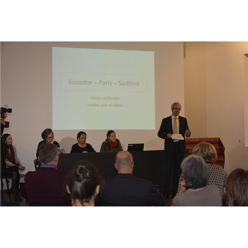 Seit Anfang der neunziger Jahre bestehe eine enge Partnerschaft zwischen Südtirol und Ecuador über die Klimabündnis-Gemeinden, unterstrich der Experte für Entwicklungszusammenarbeit Arno Teutsch. "Wir müssen uns bewusst sein, dass der Klimawandel nicht vor den Grenzen halt macht und unser Engagement fortsetzen", so Teutsch.