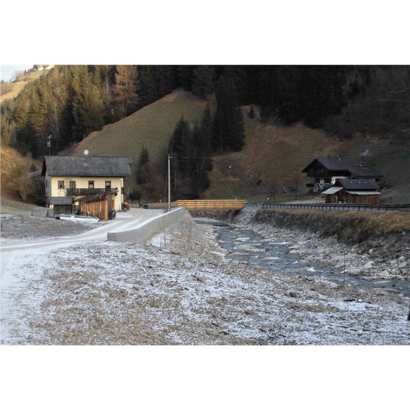 Im heurigen Jahr konnten die beiden Projekte zum Hochwasserschutz am St.-Vigil-Bach in der Gemeinde St. Vigil in Enneberg mit insgesamt 540.000 Euro abgeschlossen werden. Entlang der Handwerkerzone "Möbel Mareo" wurde der Bach auf einer Länge von 150 Meter leicht aufgeweitet und das orographisch rechte Ufer mit Zyklopensteinen und einer Uferschutzmauer aus Stahlbeton gesichert. Um oberhalb der Handwerkerzone ein Abfließen des Baches über die Staatsstrasse möglichst ausschließen zu können, musste der St.-Vigil-Bach auf weiteren 450 Metern aufgeweitet und neu gestaltet werden. Abschnittsweise musste dabei der vernässte orographisch linke Einhang mit Zyklopen gesichert bzw. an Engstellen der bestehende Fels abgetragen werden. Auch unterhalb von Crepa wurde der St.-Vigil-Bach auf einer Länge von 120 Metern aufgeweitet und ökologisch gestaltet. Zum Schutz des Wohnhauses Winkler musste orographisch links eine Uferschutzmauer errichtet und eine Brücke erneuert werden. Für Projektierung und Bauleitung war Martin Moser verantwortlich, für den Bautrupp Markus Passler.