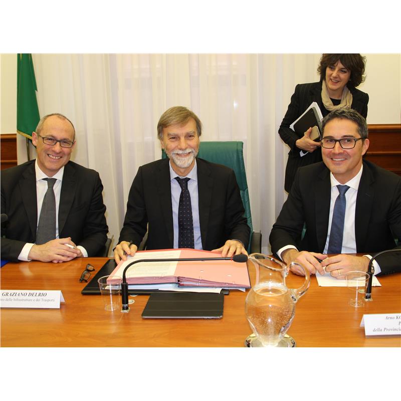 Im Ministerium für Transport und Infrastruktur in Rom haben Rossi und Kompatscher nicht nur als Landeshauptleute des Trentino und von Südtirol sondern auch als Präsident und Vizepräsident des Mehrheitsaktionärs "Region Trentino-Südtirol" gemeinsam mit Minister Graziano Delrio und den weiteren zwölf öffentlichen Teilhabern der Brennerautobahn AG das Einvernehmensprotokoll unterzeichnet, auf deren Grundlage nun im Sinne der europäischen Vorgaben die Konzessionsvergabe erfolgen kann. Mit ihrer Unterschrift verpflichten sich das Ministerium und die öffentlichen Teilhaber zur Wahrnehmung der im Protokoll aufgelisteten Aufgaben und Pflichten, wobei es auch darum geht, die notwendigen verwaltungstechnischen und rechtlichen Voraussetzungen dafür zu schaffen. Dazu gehört unter anderem die Umwandlung der Brennerautobahn-AG in eine rein öffentliche Gesellschaft, wie von der Aktionärsversammlung vom 10. Dezember vergangenen Jahres beschlossen.