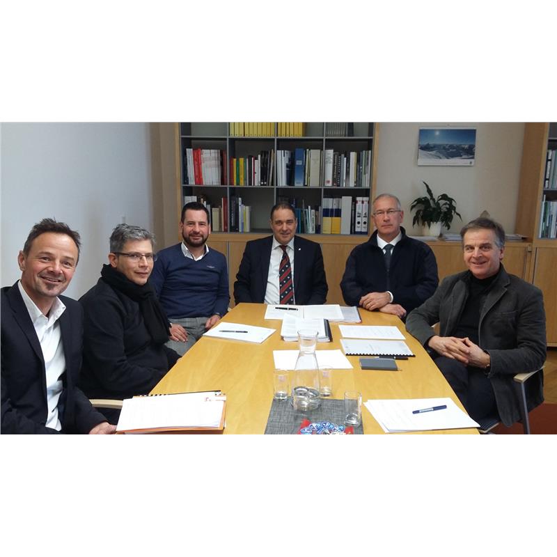 Bautenressortdirektor Paolo Montagner, Hochbauabteilungsdirektor Andrea Sega, Tiefbauabteilungsdirektor Gustav Mischi und Othmar Neulichedl vom Wohnbauinstitut WOBI haben mit Christian Molzer und Robert Müller von der Landesbaudirektion Tirol über verschiedene Themen im Sektor öffentliche Arbeiten von der Immobilienverwaltung und deren Instandsetzung, über den Straßenbau, die Vergabe von Dienstleistungen bis hin zur Projektierungstätigkeit gesprochen und Erfahrungen in den Bereichen ausgetauscht.