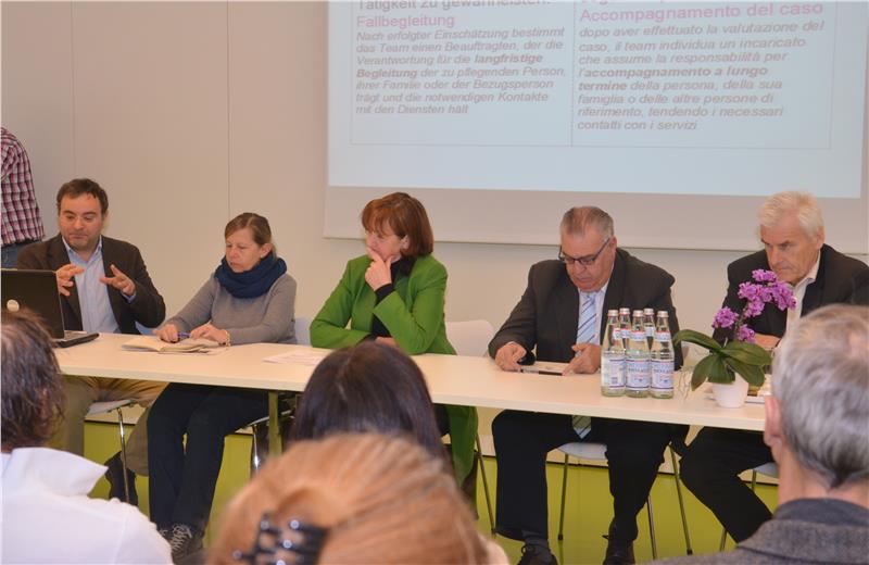 In den neuen Anlaufstellen arbeiten verschiedene Fachkräfte der Sozialdienste, des Südtiroler Sanitätsbetriebes und der Seniorenwohnheime zusammen. "Durch diese enge Vernetzung und koordinierte, dienstübergreifende Zusammenarbeit des bereits bestehenden Personals können betreuungs- und pflegebedürftige Menschen, ihre Familien, Angehörigen und Bezugspersonen in der Betreuung stärker unterstützt werden", erläuterte der Direktor der Landesabteilung Soziales Luca Critelli. Der Dienst ist kostenlos. Zukünftig sollen die Anlaufstellen für Pflege und Betreuung neben einer Ersteinschätzung und Bewertung der Situation in einem zweiten Schritt ab 2017 auch Sofortmaßnahmen sowie mittel- und langfristige Unterstützungsmaßnahmen in die Wege leiten sowie in einem dritten Schritt ab spätestens 2018 die konkrete Begleitung der zu pflegenden Person und ihrer Familie oder ihrer Bezugsperson übernehmen.