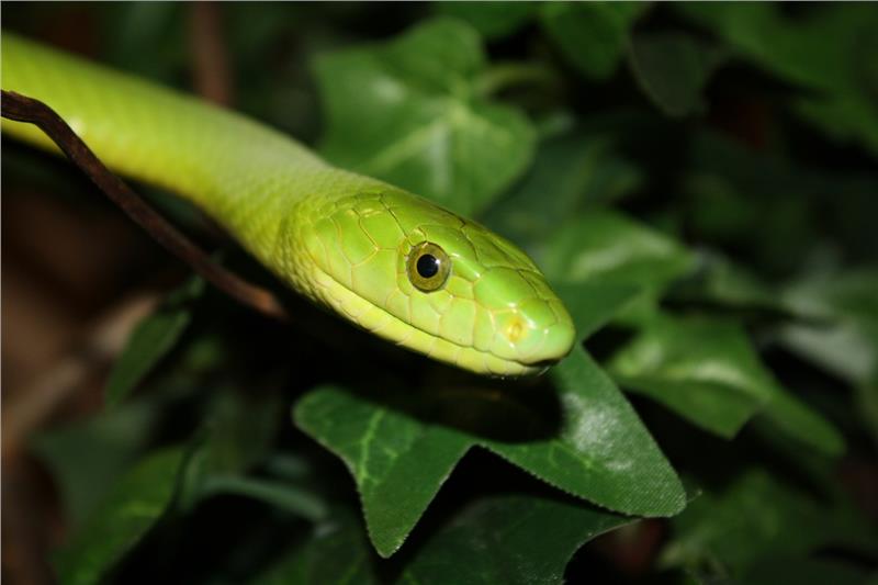 Ein weiterer Höhepunkt der Ausstellung ist die Schwarze Mamba, eine afrikanische, hochgiftige Schlange, die eine Schnelligkeit von bis zu 20 Stundenkilometern erreicht und damit eine der schnellsten Schlangen der Welt ist. Sie wird bis zu 4,30 Metern lang, frisst Nagetiere, Eier und Vögel und ist vor allem in der Paarungszeit sehr gefährlich.
