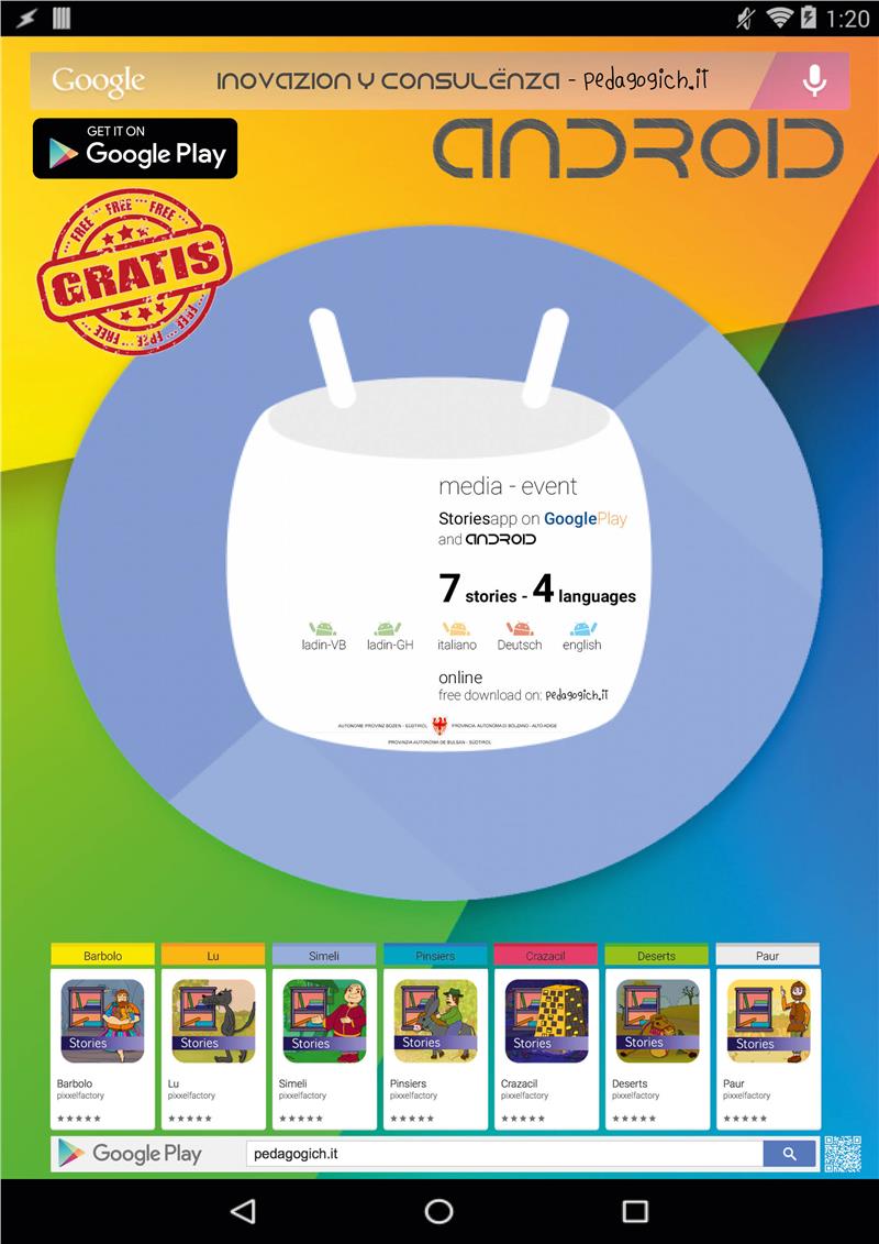 Die „Storiesapp" gibt es kostenlos im Play Store von Google und im App Store von Apple. Mehr Infos über den Download sind auf der Webseite http://www.pedagogich.it/ zu finden.