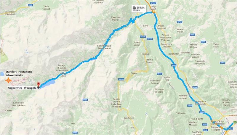 Der Sendestandort befindet sich auf 2600 Metern Höhe. Eine Winterausrüstung ist notwendig. Die Anfahrt erfolgt über die Schnellstraße MeBo und die Ausfahrt Meran Süd, anschließend in Richtung Lana und dann ins Ultental bis zur Ortschaft Kuppelwies. Dort befindet sich nach dem Zoggler Stausee der Parkplatz des Skigebietes Schwemmalm.