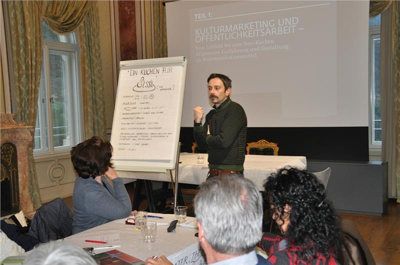 Gleich zu Beginn der Fortbildung lernten die Lehrgangsteilnehmer die Unterschiede zwischen Öffentlichkeitsarbeit und Marketing kennen. Referent Thomas Ohnewein, Journalist im Landespresseamt und ehemaliger Mitarbeiter des Touriseums betonte, dass Öffentlichkeitsarbeit nur ein Teil des Marketing sei, allerdings ein wichtiger: „Ohne ein gutes Produkt macht Öffentlichkeitsarbeit keinen Sinn, denn leere Versprechungen schaffen ein falsches Bild und können zu einem schlechten Image führen.“ Eine Ausstellung stelle das Produkt dar, das möglichst effizient und effektiv nach Außen kommuniziert werden sollte, so Ohnewein. Es könnten aber auch einzelne Objekte sein, die dazu genutzt werden, um nach Außen zu kommunizieren und dadurch Aufmerksamkeit für das Museum zu erzeugen, sagte der Journalist. Eigen- und Fremdwahrnehmung, die sich oft unterscheiden würden, miteinander in Einklang zu bringen, sei wichtig für die Öffentlichkeitsarbeit eines Museums, erklärte Ohnewein.