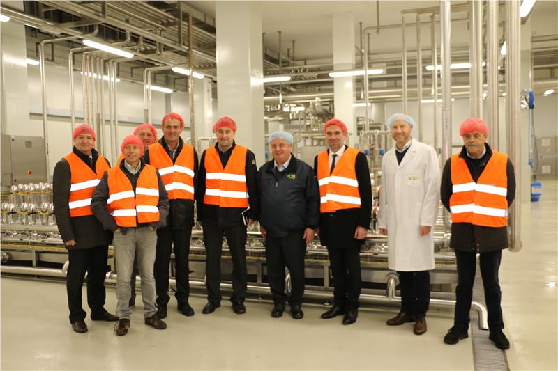 Eigentümer der VOG Products sind 20 Obstgenossenschaften und vier Erzeugerorganisationen aus Südtirol und dem Trentino mit über 15.000 Obstbauern als Mitglieder, legten Direktor Klaus Gasser und Obmann Franz Varesco bei der Betriebsbesichtigung dar. Stärkster Absatzmarkt sind die USA mit 20 Prozent, gefolgt von Deutschland mit 18 und Frankreich mit 17 Prozent. Außer Äpfeln werden auch Birnen, Pfirsiche, Marillen, Kiwi zu Säften oder Fruchtpüree in drei Schichten rund um die Uhr verarbeitet; den Apfelsaft etwa gibt es naturtrüb oder mit dem Zusatz von Ingwer, Holunder oder Bergamotte. Traditionelle und innovative Geschmacksrichtungen, mit denen die Region Trentino-Südtirol in die Welt hinaus geht.