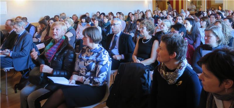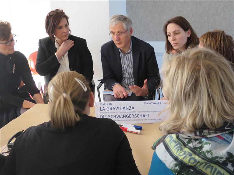 Rund 120 Fachkräfte, Wissenschaftler und Studierende holten sich Impulse für die anschließende Diskussion: Caterina Masè (Präsidentin des Kollegiums der Hebammen Trient und Operation Manager rund um die Geburt), Gianfranco Jorizzo (Mitglied des nationalen Komitees für die Betreuung rund um die Geburt), Horand Meier (Koordinator des Südtiroler technischen Komitees für die Betreuung rund um die Geburt), Charlotte Overgaard (Professorin für öffentliche Sicherheit und Epidemiologische Studien an der Universität Aalborg), Elisabeth d'Costa (Ärztin an der Universitätsklinik für Frauenheilkunde und Geburtshilfe in Innsbruck) sowie Sandra Girardi (Hebamme an der Stabstelle Qualitäts- und Risikomanagement der Generaldirektion des Sanitätsbetriebes in Bozen) berichteten über ihre Erfahrungen mit der Begleitung und Betreuung rund um die Geburt.