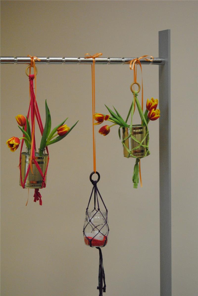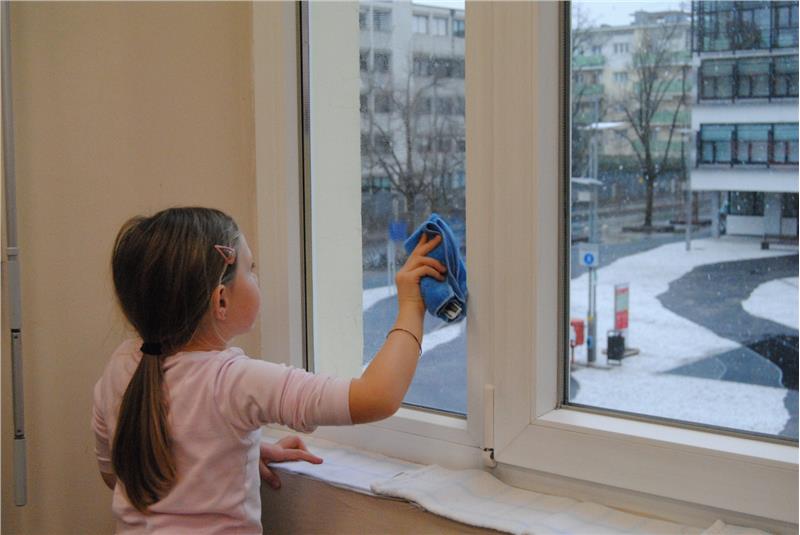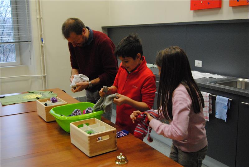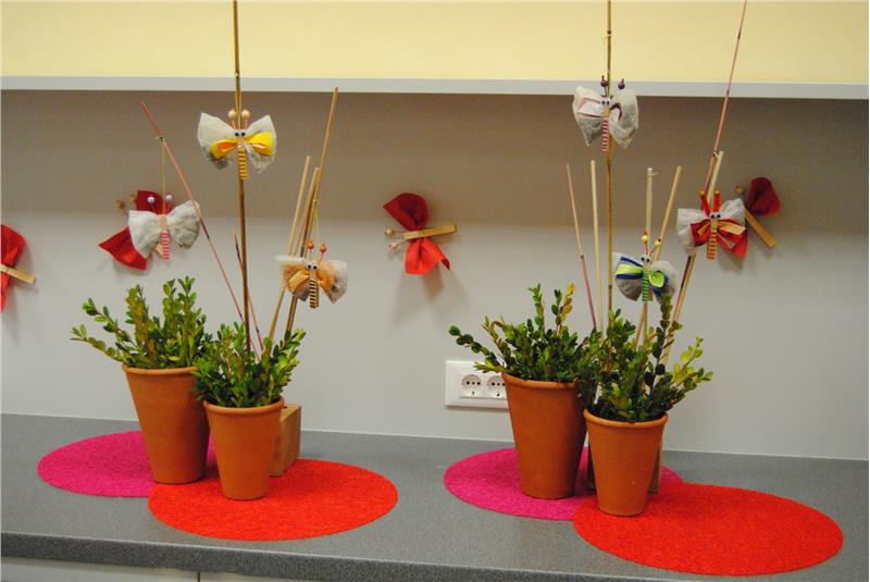 Groß und Klein konnten sich bei der "Socken Halli Galli" messen, wer am schnellsten das passende Sockenpaar findet. Unter dem Motto "Dufte Schmetterlinge" bastelten die Kinder und Eltern Schmetterlinge mit getrockneten Lavendelblüten für das Schlafzimmer. Im Nähraum wurden alte T-Shirts zu einer Blumenampel geknüpft und verknotet. Bei der Fensterputzrally konnten die Familien das Fensterputzen üben und sich Tipps und Tricks bei der Fachlehrerin holen.