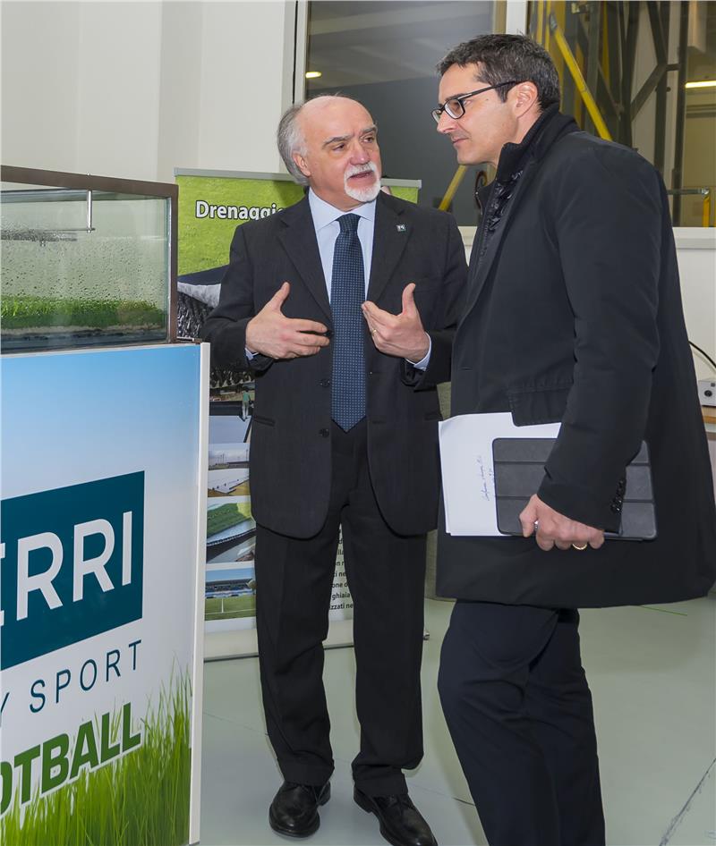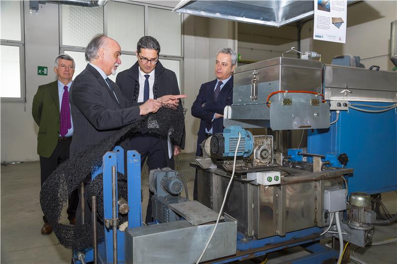 Francesco Ferraiolo, Managing Director del Maccaferri Innovation Center und Landeshauptmann Arno Kompatscher beim Rundgang im Forschungszentrum.