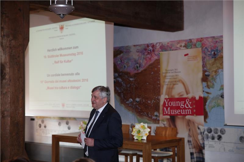 Die Direktorin der Abteilung Museen und des Betriebes Landesmuseen, Karin Dalla Torre, begrüßte die etwa 120 Fachleute aus Südtirol, der Landesrat für Museen, Florian Mussner, dankte allen für die wertvolle Arbeit der vielen ehrenamtlichen Mitarbeiterinnen und Mitarbeiter in den Museen. „Die Museen haben einen wichtigen gesellschaftlichen Auftrag, vor allem für die Jugend und die Familie. Sie bearbeiten Lebensthemen der Menschen in der Vergangenheit, Gegenwart und Zukunft und schaffen so die Grundlage für ein friedliches Zusammenleben“, so Mussner.