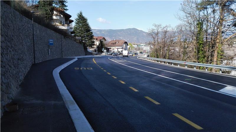 Für Metrobusse sind nun unter der Regie des Straßendiensts und an der Unteren Gand in Eppan zwei neue Haltestellen, entsprechende Vorzugsspuren und ein Fußgängerweg fertig gebaut worden. „Es gibt jetzt genügend Platz, sodass im Rahmen des Konzepts zu den Metrobussen die Haltestellen in Zukunft auch von Gelenkbussen angefahren werden können“, sagt LR Florian Mussner.