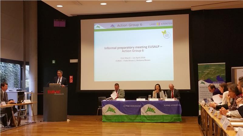 Am Sitz der Eurac in Bozen fand heute die erste Sitzung der Aktionsgruppe Sechs (Action Group 6) der Eusalp statt. In der Eurac ist nämlich das ständige Sekretariat der Alpenkonvention untergebracht, die sich infolge eines völkerrechtlichen Vertrages für den umfassenden Schutz und die nachhaltige Entwicklung der Alpen einsetzt. Eben in die Hände des Teams der Alpenkonvention sowie des Landes Kärnten ist die Leitung der Arbeitsgruppe Sechs der Eusalp gelegt. Diese setzt sich in erster Linie mit den Themen der werthaltigen Entwicklung des Alpenraumes auseinander: die Raumordnung und der nachhaltige Umgang mit den natürlichen Ressourcen der Region, mit besonderem Augenmerk auf den Bodenschutz und das Wassermanagement. Diese Themen wurden auf der heutigen Sitzung besprochen, ebenso wie der Beitrag, den die Land- und Forstwirtschaft zu Landschaftsschutz und Biodiversität beiträgt. Die Sitzun war außerdem Gelegenheit für die Mitglieder der Arbeitsgruppe, sich näher kennenzulernen und die nächsten Arbeitsschritte festzulegen.