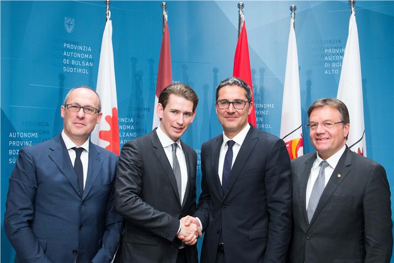 Die Flüchtlingsproblematik und das Grenzmanagement Österreichs, aber auch die Autonomieentwicklung, die italienische Verfassungsreform und das Finanzabkommen mit Italien sowie die Zusammenarbeit in der Europaregion Tirol-Südtirol-Trentino waren die bestimmenden Themen des heutigen Treffens des österreichischen Bundesministers für Europa, Integration und Äußeres, Sebastian Kurz, mit den Landeshauptleuten Arno Kompatscher, Ugo Rossi und Günther Platter. Der Bundesminister für Europa, Integration und Äußeres lobte den Initiativgeist und die Solidarität innerhalb der Europaregion Tirol-Südtirol-Trentino, die er als Erfogsmodell bezeichnete. Dieser zeige, dass der Wille zur Zusammenarbeit und das Gefühl der Zusammengehörigkeit durchaus dazu befähigten, trotz unterschiedlicher Ausgangssituationen und Befindlichkeiten, gemeinsame Werte und Anliegen voranzubringen. Darüber hinaus verwies Bundesminister Sebastian Kurz auf die enge Verbindung Österreichs zu Südtirol, was nicht zuletzt der ständige Informationsaustausch belege.