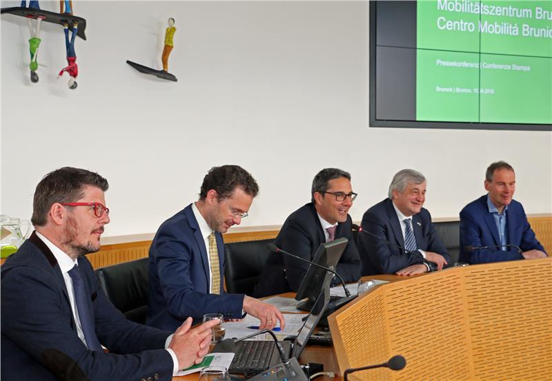 Für die Verbesserung des Brunecker Bahnhofes habe es verschiedene Projekte gegeben - das letzte hätte rund 25 Millionen Euro gekostet und nun läge ein intelligentes Projekt für ein 22.000 Quadratmeter umfassendes Mobilitätsschnittstelle vor, das allen Ansprüchen gerecht werde und optimale Umsteigeflächen biete, hob der Präsident der Südtiroler Transportstukturen AG (STA) Martin Ausserdorfer hervor. Laut STA-Präsident laufen bereits die Planungen für den Umbau des Bahnhofsgebäudes. Das Bahnhofsareal soll 2018 verwirklicht werden und die neue Zufahrt 2019.