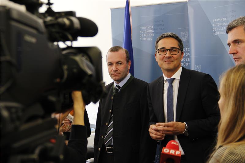„Durch Grenzen bereinigt man keine Probleme, man verlagert sie nur“, mit dieser Aussage haben Landeshauptmann Arno Kompatscher und der Fraktionsvorsitzende der Europäischen Volkspartei (EVP) im EU-Parlament, Manfred Weber, heute (18. April) in Bozen ihren gemeinsamen Standpunkt untermauert. Sie plädierten für ein gemeinsames Europa ohne Binnengrenzen, getragen von den europäischen Grundsätzen.